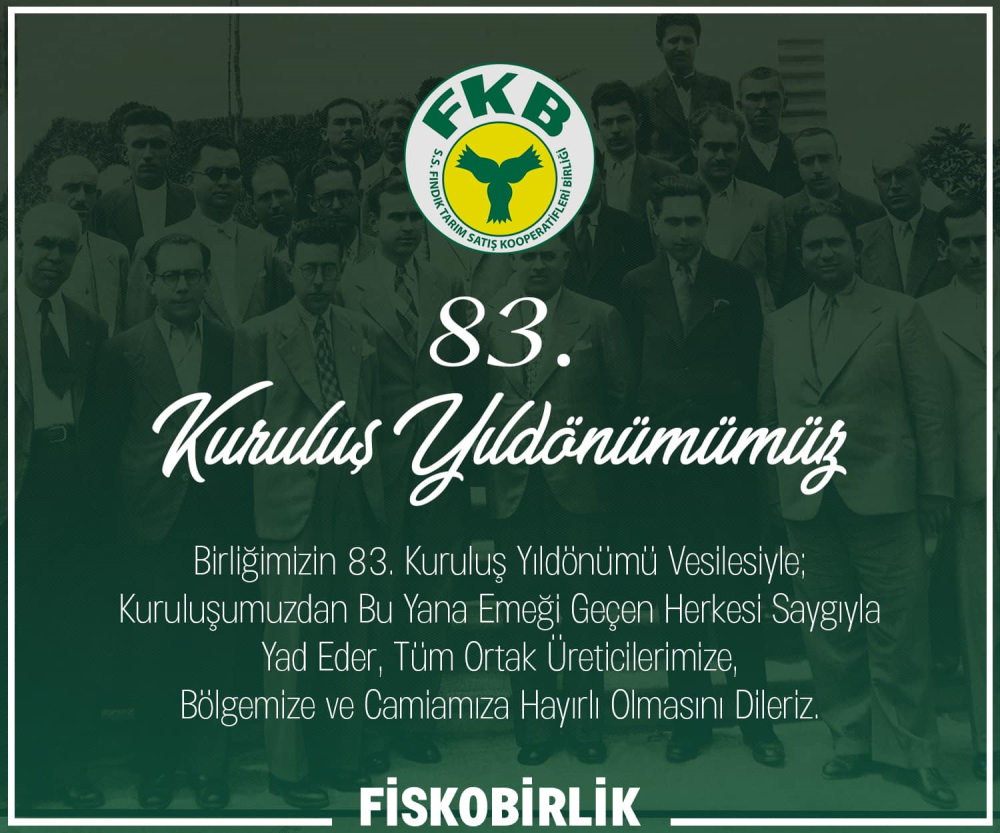Birliğimizin 83. Kuruluş Yıldönümü Vesilesiyle; Kuruluşumuzdan Bu Yana Emeği Geçen Herkesi Saygıyla Yad Eder, Tüm Ortak Üreticilerimize, Bölgemize ve Cam,amıza Hayırlı Olmasını Dileriz.