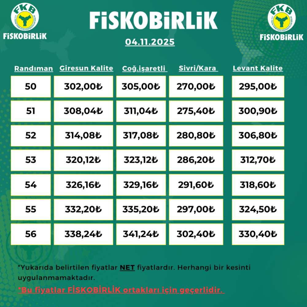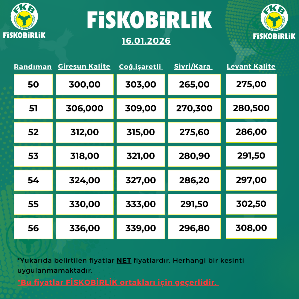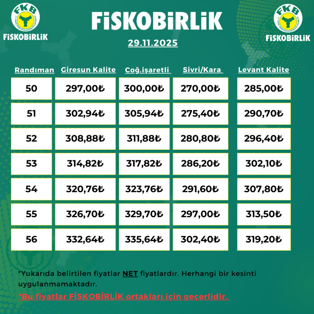 ORTAK İÇİ FINDIK ALIM FİYATI