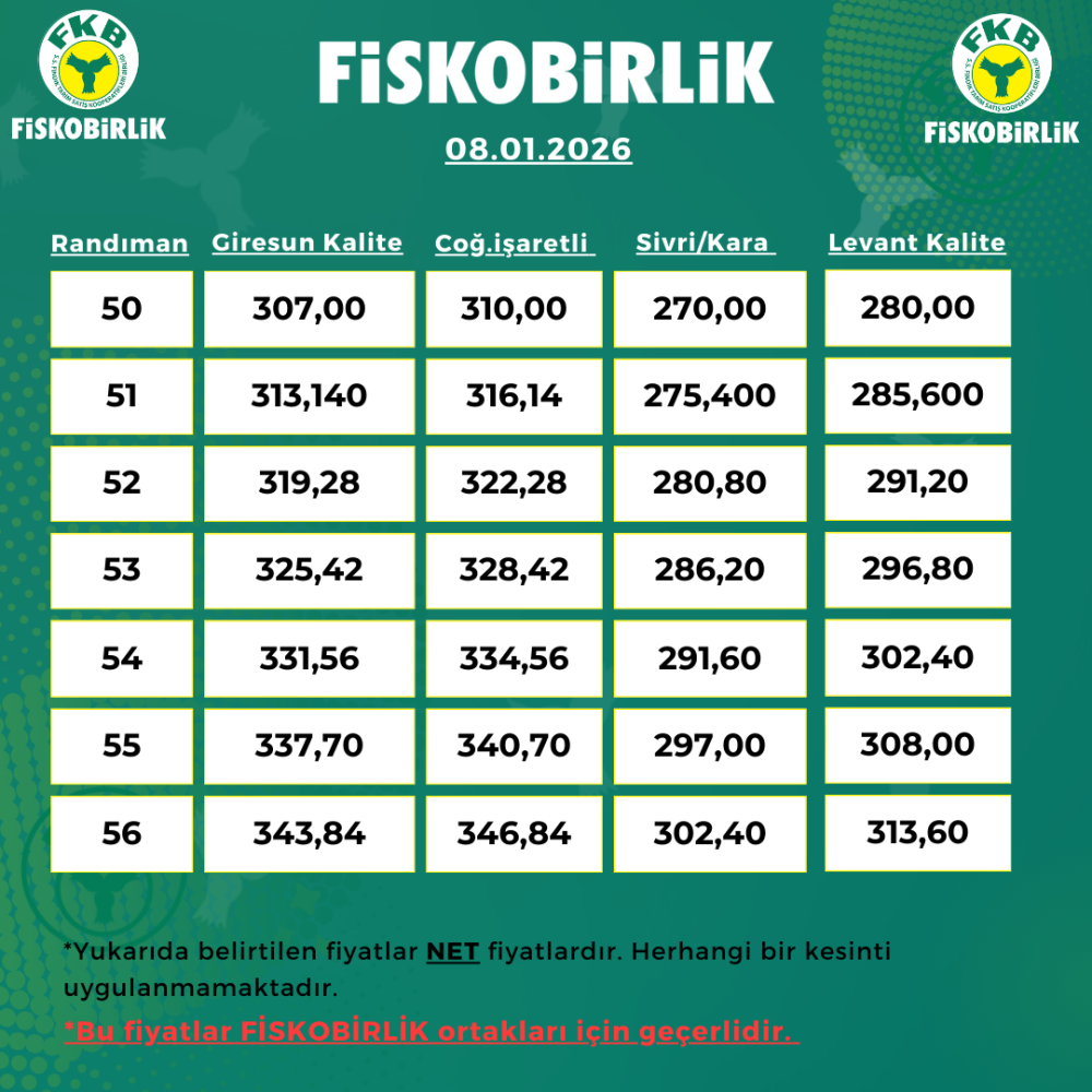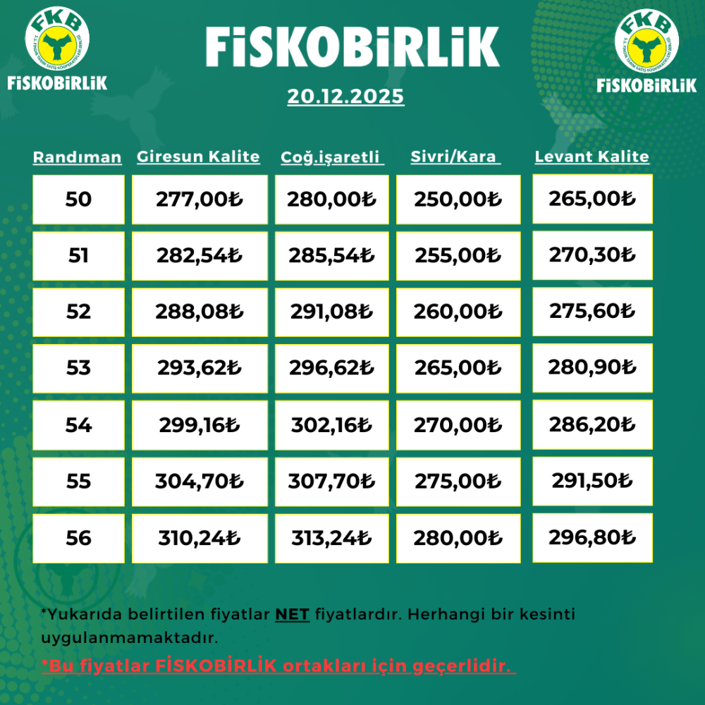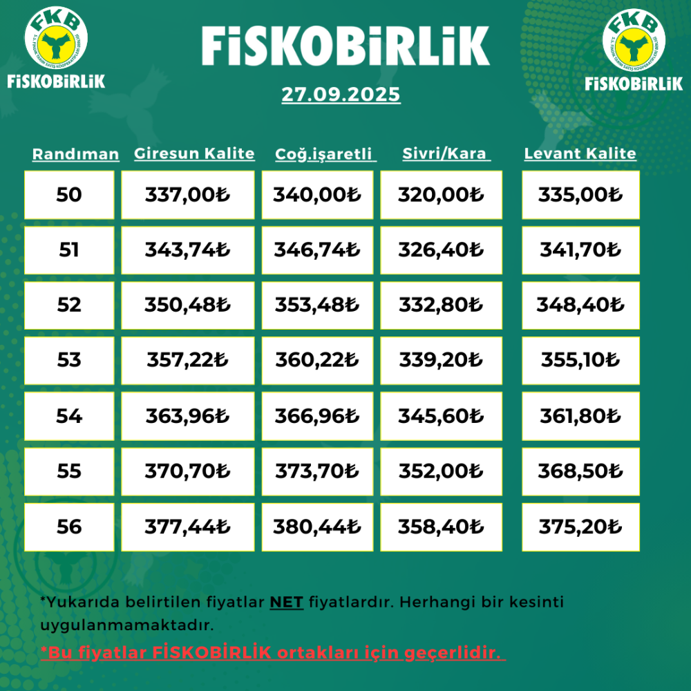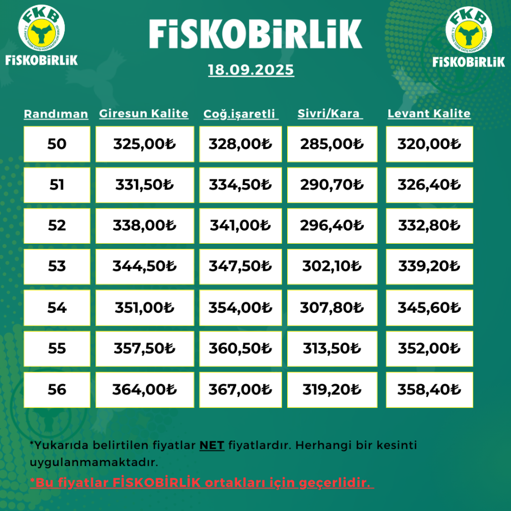 ORTAK İÇİ FINDIK ALIM FİYATI