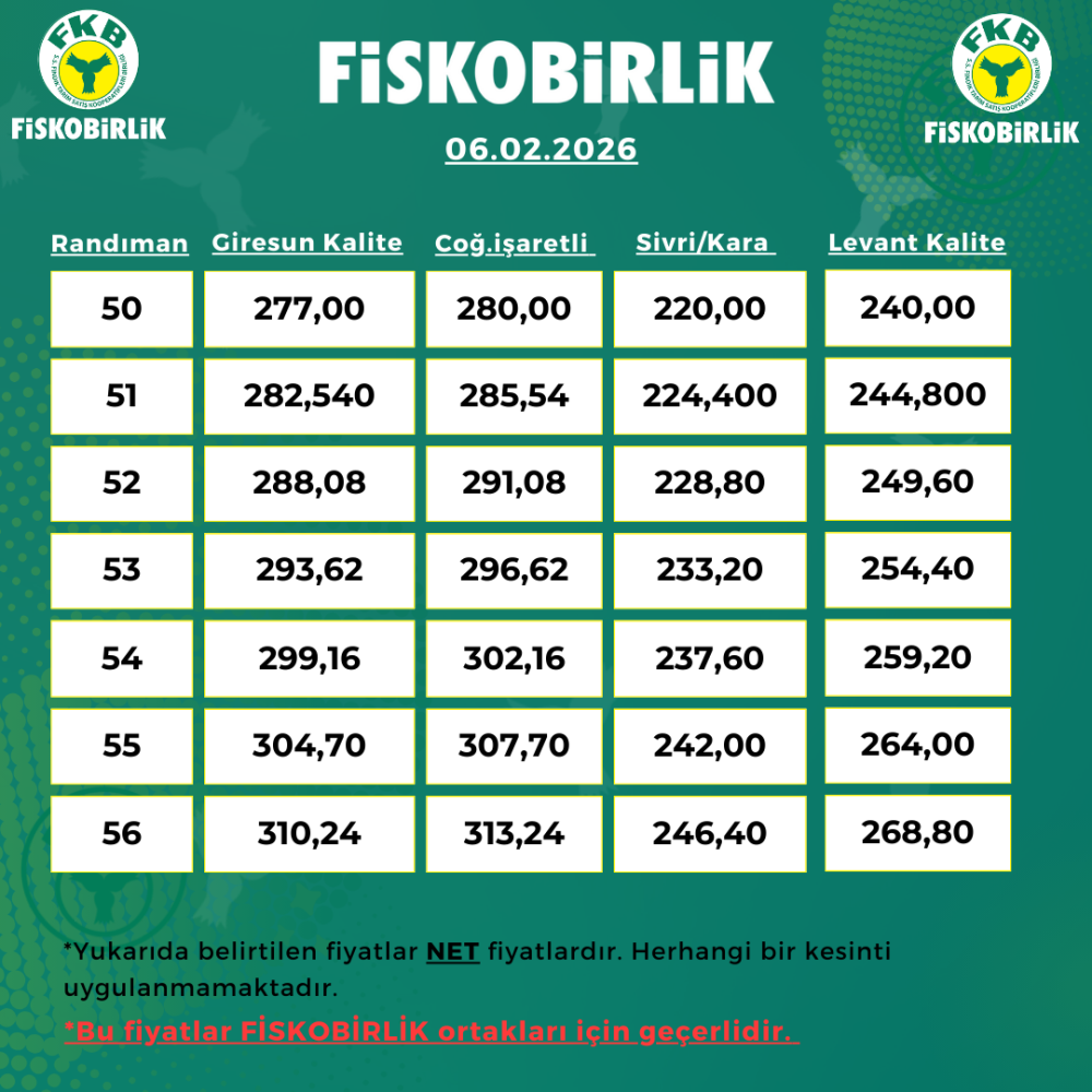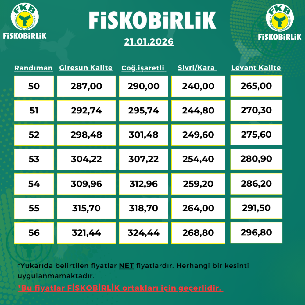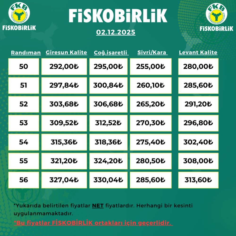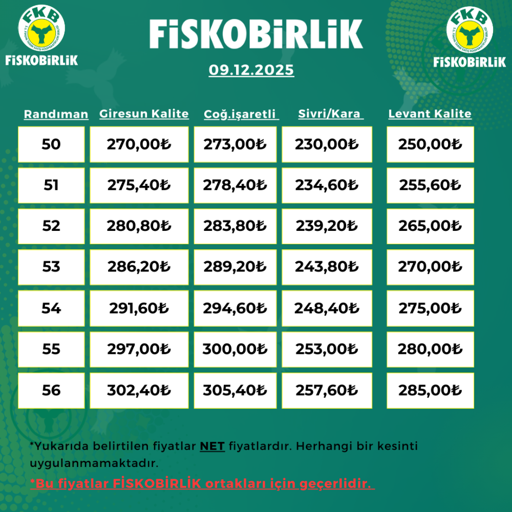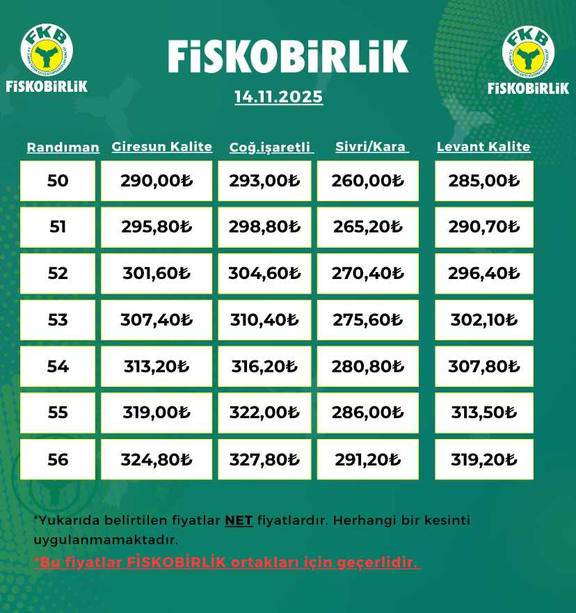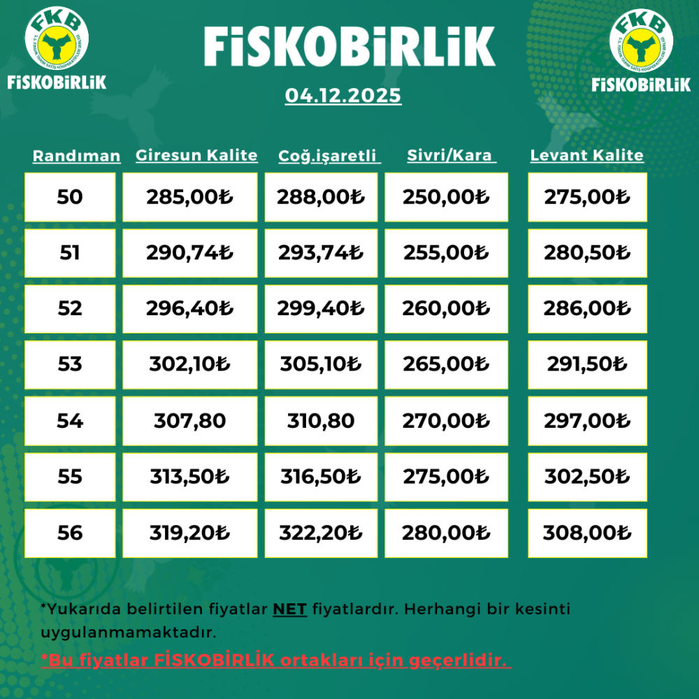 ORTAK İÇİ FINDIK ALIM FİYATI